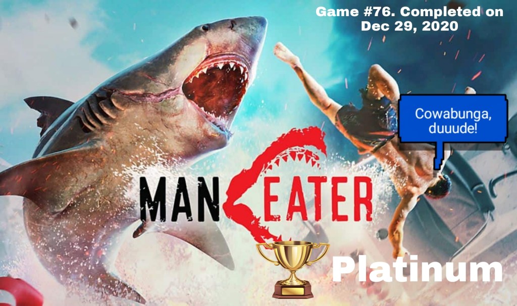 The entire game feels like you’re swimming in the surrounding waters to some city from an open world, GTA-style game. When you surface in particular spots, you can see skyscrapers, resorts, golf courses and other industrialized buildings (I swore the city from Crackdown is in the background). There are also landmarks to discover both on land and underwater (which act as one of the game’s collectables/objectives) and they provide some of the game’s more lighthearted moments, including some hit/miss social commentary. Speaking of social commentary, there’s a ton of it. The developers definitely make you want to hate humanity and given how 2020 has been in the United States, I’m not too fond of people right now, either. Devouring stupid humans on shorelines/boats feels good and after you cause so much devastation, you build-up a GTA-style “wanted meter” of sorts which will cause hunter boats to stalk you. Maneater’s core gameplay loop is rewarding/satisfying, although it does get repetitive the further you progress. Fortunately, the game doesn’t overstay its welcome. I completed the game with 100% completion and the Platinum trophy earned.
