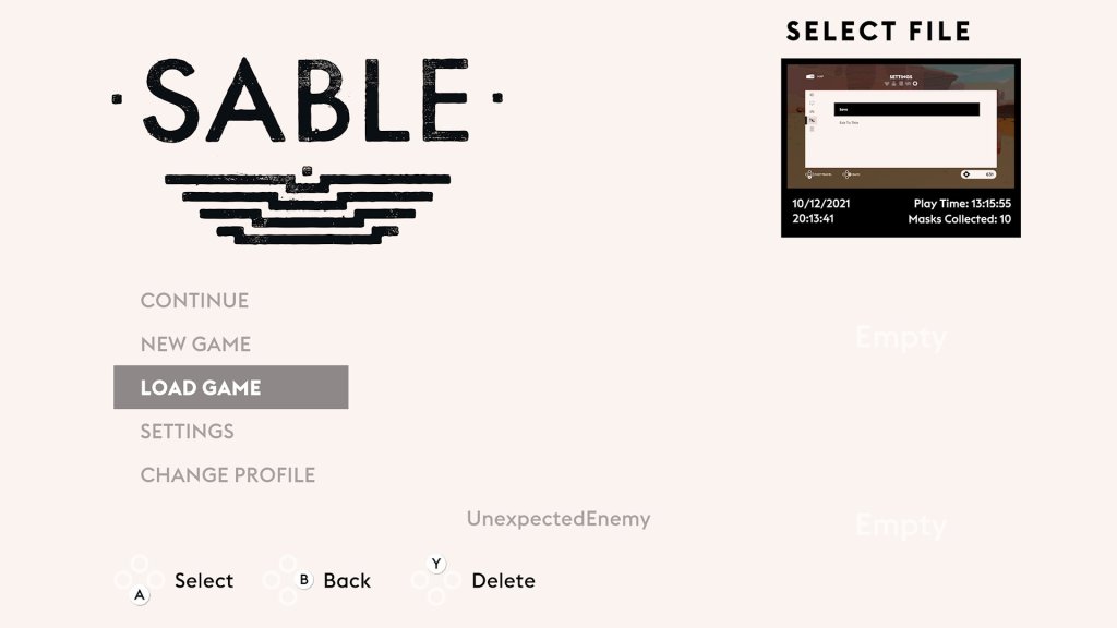 Exploring the world of Sable is an absolute joy. One of the very first objectives in the game is to craft a hover bike to make traversing the wasteland more manageable. BotW specifically comes to mind as a point of comparison as there’s almost always a landmark or something of interest in the distance that’s begging for your attention. The world seems specifically designed around eye-catching landmarks sprinkled around the map. While Sable is somewhat of a 3D platformer at its core, much like BotW, you also have the ability to climb nearly any wall in the game. The core gameplay mechanics center around a stamina meter, which dictates what you can climb/explore. Over the course of the game, you’ll find Korok Seed-like collectables which can be traded for stamina upgrades. There are small settlements, larger towns, crashed spacecraft, ruins and creature-filled caverns to discover and almost all of these areas rely on your stamina meter to explore. Everything you do in Sable is also tied to a job/profession of sorts, with the ultimate reward being a “mask”. The masks are a big deal in the world of Sable. Not only are they proof of mastery for a specific job/profession, they’re also needed to trigger one of the game’s many endings.