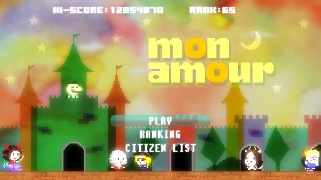 In addition to the hearts that are strewn about the screen, there’s fruit and melons to collect, which give you points and a shield, respectively. Fruit will send a small shockwave once collected, which will move the buildings above/below you backwards off of the screen. The melon provides invincibility for a short duration, which also allows you to “clear the screen”, so to speak. Think of the melon as a traditional “bomb” in an arcade shooter. You can complete the game in one sitting (a run of the game takes maybe 15-30 minutes), but it’s meant to be replayed in order to climb the online leaderboards. I completed the game with the true ending (which requires all citizens to be rescued) and I ranked 65th place on the leaderboards. mon amour is one of my favorite games of the year and it’s yet another reason why I continue to love Onion Games as a developer. What feels like a project that started as a jumping-off point from their very own mini-game found in moon and an extension of their free PC release, Romeo & Juliet, mon amour is a culmination of their previous works and one of the best arcade-like experiences you can find in 2021.