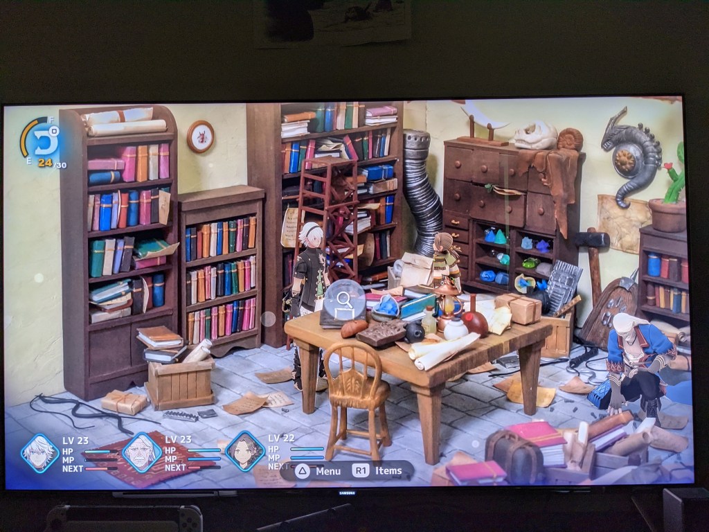 On the surface, FANTASIAN is a traditional, turn-based JRPG. If you’re a fan of post-PS1 era FF titles (including the aforementioned Mistwalker games), you’ll feel right at home here. What’s different/unique about FANTASIAN that sets it apart from anything else you could have played from 2021 is how the developers approached making the game. You see, in FANTASIAN, every area/environment in the game was handcrafted and built from scratch with real materials and craftsmanship. What you’re actually seeing in the game are high-res photographs of the diorama sets that were created for the project. The UI, visual effects and character models are essentially placed on top of these pictures. It’s a stylistic/artistic approach I’ve rarely, if ever, seen before when creating a game and the amount of love and care put into these sets is truly remarkable. Every little cup, table, tree or piece of fabric was meticulously and purposefully placed to bring the world to life. I found myself walking into someone’s house/shop and just putting the controller down to look at all of the objects and props that were created and placed on each set.