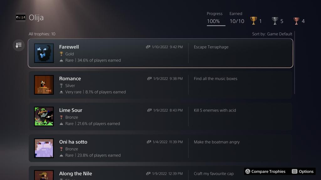 The combat portions of the game have you defeating uninteresting enemy types with your shield and despite learning some new abilities along the way, it’s mostly a button smasher. The level design is decent but it’s nothing special. Each main area has some simple platforming sequences and light puzzle-solving. I completed the game at 100% with the Platinum trophy earned and it only took me around 5 hours, so it definitely doesn’t overstay its welcome. For the three people reading this who might be interested in Effie, be warned that the game locks you out of the main areas once you complete them (including the overworld) which will prevent you from collecting all of the hidden relics, although the “point of no return” is clearly marked. I can’t speak to why developers would design their game this way, but there’s nothing I dislike more than missables or areas that lock you out of revisiting them, especially if there isn’t a chapter select or new game+ options. At this point in my life, it’s rare for me to replay an entire game to 100% it, but I still enjoy getting the most out of a game if it makes it easy on the player. I didn’t love Effie, but I also didn’t hate it, so I’m curious what these developers will do next.