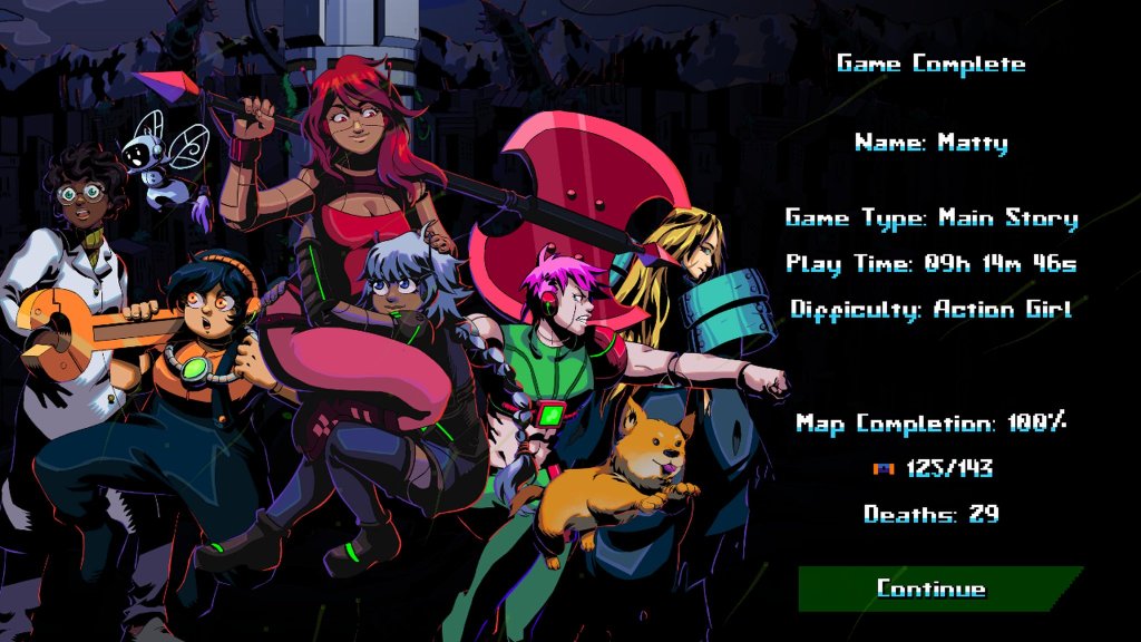 The game’s fixation on time made me reflect on my youth and how I spend my time as an adult more so than anything else right now. If I was in my late teens/early twenties, I would have kept playing this game until there was nothing left to unearth. As I’ve gotten older, I’ve realized I don’t have all the time in the world to do all of the things I want to do, whether they be life/game-related, and it makes me sad. I completed the game on “Action Girl” difficulty, but there’s still a ton of treasure chests to find, weapons to upgrade and a true ending to seek out and that’s in addition to extra modes like new game+ and a dungeon/boss rush; the game’s packed with content. I loved UNSIGHTED, it’s one of the best top-down, 2D Zelda-likes I’ve played in a long time. If you’re a fan of this sub-genre of sorts, make the time for this one.