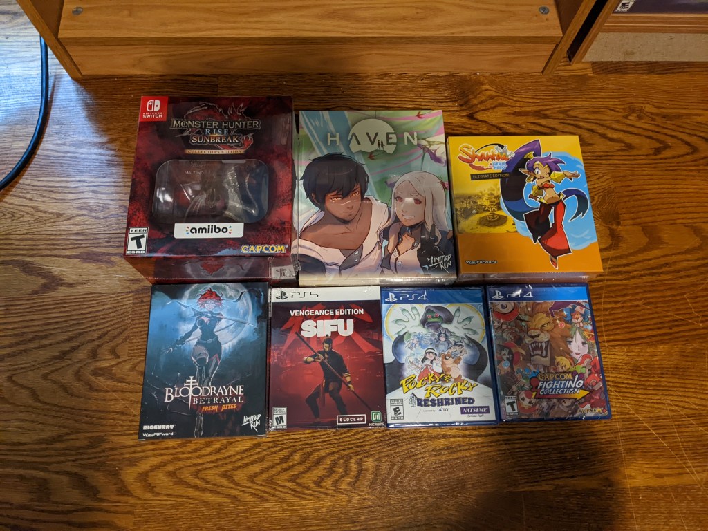 Pictured above is more LRG releases, in addition to a few random pick-ups, including Sifu (which I’m dying to play). I also took a picture of my entire Xeno collection when my standard edition copy of Xenoblade Chronicles 3 arrived. The collector’s edition was sent separately months later and I haven’t taken a new picture yet.