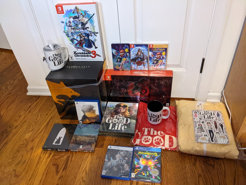 I played Swery’s The Good Life back in 2021, but my LRG collector’s edition showed up in 2022. I’ve used the coffee cup multiple times already. The Bayonetta 3 collector’s edition is very nice as well (it comes with a case that holds all three of the games on Switch). I really wanted to open my copy of Mario + Rabbids Sparks of Hope, but I have yet to finish Kingdom Battle, so it shall stay sealed on my shelf for the time being.