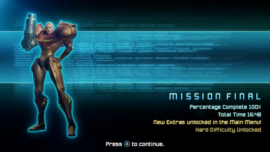 Finding all of the item pick-ups in any Metroid game without any assistance is quite the endeavor. Metroid Prime, however, cleverly uses its sound design to give players hints. If you’re within proximity to an item pick-up, you’ll hear a consistent, unique sound, which lets the player know that something is nearby. While you have the various scanning visors to help you find hidden secrets, revisiting every are while being in X-Ray mode isn’t exactly a fun time. I don’t think I ever collected everything on my own before, not even back on the original GC release. I really didn’t want to resort to a guide this time around either, but I also don’t have all of the time in the world right now (and 2023 is a monster in terms of new releases I’d like to play). This time around, I decided to turn off the game’s music in the option settings before setting out on my hunt for all of the upgrades. By doing this, I now have a newfound appreciation for the game’s sound design. I had no idea Samus’ ship made the sounds it did in the starting area, for example. I found nearly all of the remaining items I was missing utilizing this technique. I completed the game on Normal difficulty at 100% completion. Bring on the rest of the trilogy and where’s Metroid Prime 4?