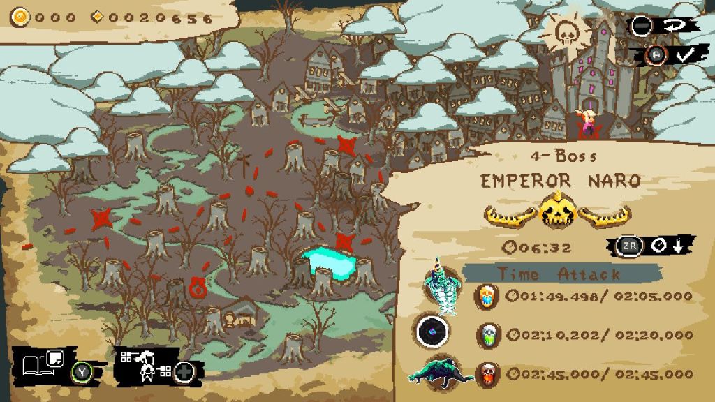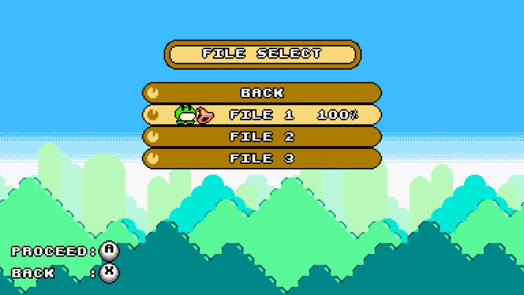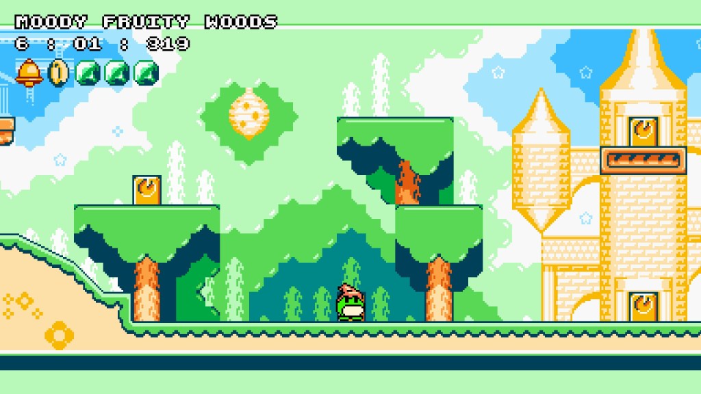 Froggo’s Adventure: Verdant Venture, developed by SmellyFrog, is a 2D platformer that wears its love for NES era Kirby on its sleeve. An evil witch is mistaken for stealing something out of Froggo’s well (presumably their home?), so the little frog sets off on a quest to recover their stolen goods. The story isn’t anything to write home about, but you’re not exactly here for a compelling reason to jump around as a frog and collect things. As Froggo, you can walk, jump and use your tongue for both combat and traversal purposes. If you gobble up a monster, you can spit them out and they’ll bounce around the environment hitting other enemies and objects along their path. The tongue is also a grapple-hook of sorts that can be used to cross gaps at specific points in a level. The game has a nice, colorful aesthetic to it and the map screen feels like it’s straight out of Kirby’s Adventure on the NES.
