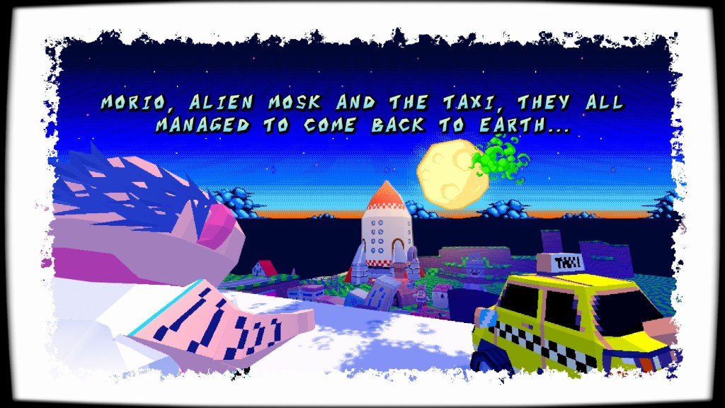 Yellow Taxi Goes Vroom, on a casual playthrough, is relatively forgiving. If you fall into a “death pit”, you’ll respawn at a checkpoint and the only penalty is the loss of coins. Coins are used to purchase hats for your taxi, of course; no modern-day indie game can go without having hats as some sort of unlockable. The game is also extremely colorful/vibrant and complimented by a nice pixelated look with backgrounds that feel like they’re stripped right out of Sega’s own Outrun. The developers aren’t exactly hiding their disdain for Elon Musk, either, which I can appreciate. The entire game is sort of poking fun at how terrible of a company Tesla is, calling it “Tosla” and how the “Gears” coming from the company are ruining everything. They also lean heavily into Elon Musk’s space exploration infatuation by making him an alien. I completed the game with 164 Gears collected, but there’s so much more to do in the post-game. After you finish the game, a set of bonus levels become available based on how many of the Golden Bunnies you collected. The few extra levels I tried were tough, so there’s plenty here if you’re one who enjoys 100%’ing games. Yellow Taxi Goes Vroom feels like the type of indie game and 3D platformer that will become huge once it gets ported to consoles (presumably Switch). I will certainly buy it again if a PS4/PS5 version becomes available in the near future.