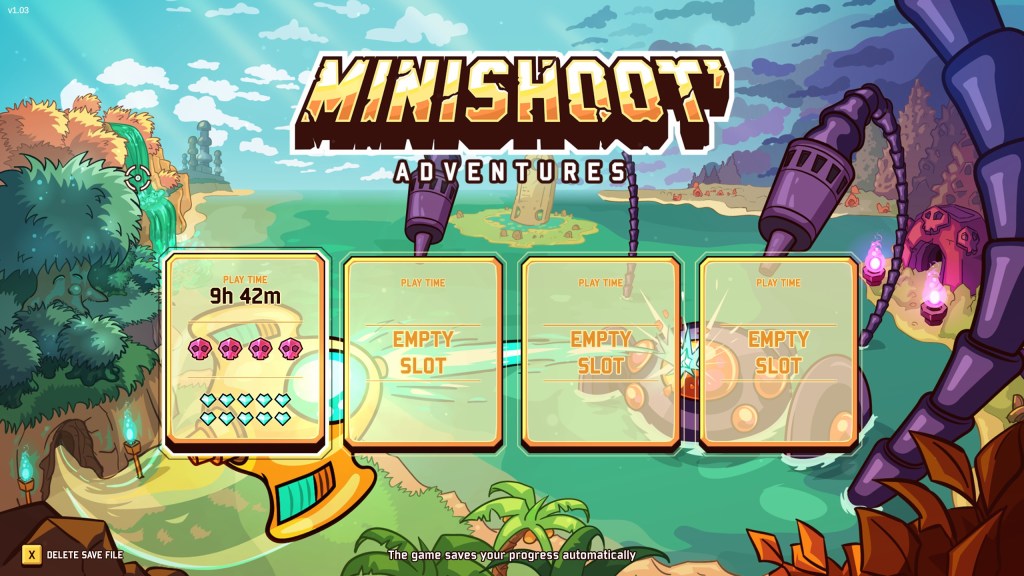 Not every game has to do what NieR did back in 2010. Although it sort of fits the narrative in Minishoot’ Adventures, I’m not the biggest fan of the “ultimate” reward for doing everything the game has to offer. After you beat the true final boss and complete the arena, which basically means 100%’ing the game, you’re given the decision to delete your save file. The story suggests that the ship that was awakened and granted powers before you rejected the offer of relinquishing their power to the giant, god-like orb in the sky. It’s definitely a cool idea and was something I was not expecting at all, but after playing the game for 15+ hours on the hardest difficulty, collecting and upgrading everything in the game, I didn’t exactly feel compelled to feed the game’s larger narrative. Minishoot’ Adventures doesn’t exactly earn its meta-narrative here, at least not for me. It’s a twin-stick shooter with Zelda/Metroid-like elements at its core, not the emotional investment NieR was. What’s even more frustrating is that there’s a single steam achievement for deleting your save file, so at the time of writing this, I am sitting at 33/34 achievements earned. I might pull the trigger by the end of the year (if I can backup my save file on a thumb-drive, just like I did with NieR on PS3 back in 2010), but for now, I’m good.