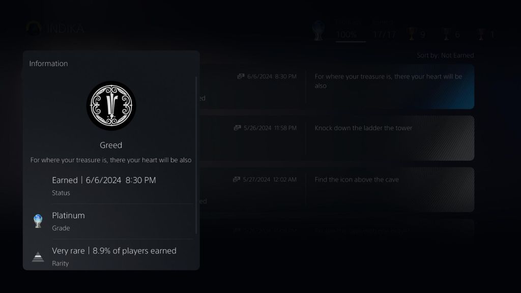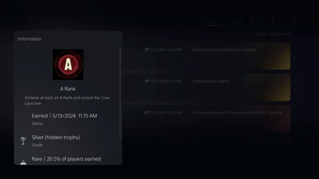 Having finally played Hollow Knight after all these years, it was difficult to analyze the game for its “vanilla” experience. The game has been updated a lot since its initial release and all of the new content is seamlessly integrated into the base game. I feel like I might have had a different impression of the game had I played it at launch versus experiencing it today. Regardless, there is a lot of game in Hollow Knight. I spent nearly 50 hours going for the coveted 112% completion and I still couldn’t manage to see and do everything the game had to offer. I got all trophies except for the ones related to the final boss rush rooms, which are a part of the “Godhome” DLC. I managed to complete the game and beat the “true final boss” at 110%, but I just didn’t have it in me to obtain those last 2 percentage points. The boss rush content is hard and while the combat is fine in Hollow Knight and there are many different “build” combinations with the Charms you have at your disposal, I am just too old and tired to bang my head against this wall. Congrats to those who have accomplished the monumental task of earning 112% in Hollow Knight, but for now, I am happy to be in the camp with the rest of the ants sitting under a magnifying glass waiting for Silksong to release as the sun scorches this godforsaken earth into oblivion.