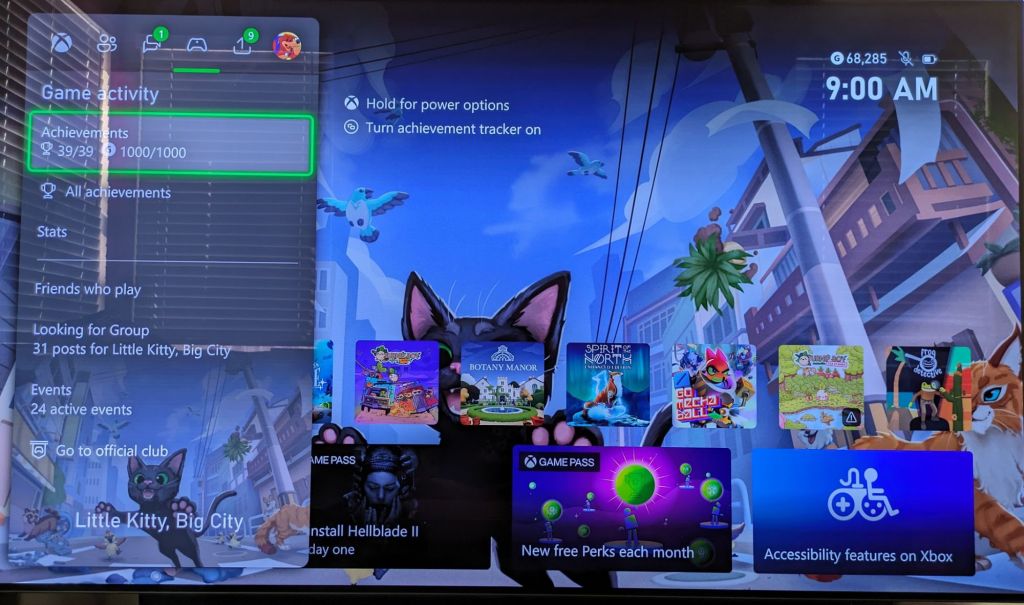Something I found super refreshing about Little Kitty, Big City is that there’s no sad story or lesson to be learned by the end of the game. Although this is generalizing to a degree, I think a lot of indie developers have a tendency for there to be some emotional twist or gut-wrenching realization to the story they’re telling. Your owner isn’t dying or you’re suddenly not moving away or anything like that once the credits roll. Sometimes it’s just nice to have a game where you just sort of exist and nothing is seemingly wrong. I’ve dealt with an ailing father this year who ultimately passed recently, so I’m not exactly resonating with tragic stories in videogames right now. At some point, I will likely post a creative piece inspired by the game’s photo mode. Little Kitty, Big City is one of the few games I felt compelled to take “action-shots”, so to speak (it’s probably because of all of the cute hats you can wear) and there’s a story I want to tell with the in-game pictures I took. I downloaded the game from Game Pass on my Xbox Series X and completed it with everything collected at 100%, all 1000/1000 achievements earned. I really liked it.
