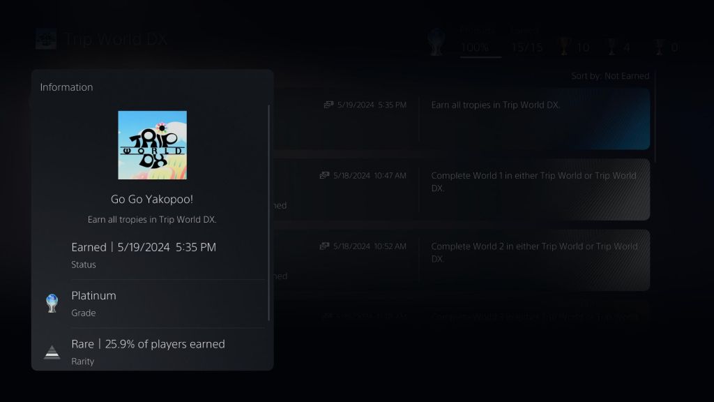 New to this “DX” version is a selection of artwork, development materials and even an interview with one of the original creators. You can also play the original GB game or the “modernized” DX version with color. Since the PS4 version has trophies, one trophy asks the player to turn Trip into all forms during a single playthrough. I can’t imagine anyone figuring this out on their own as there are hidden transformations based on the combination of fruits that you can collect. A cherry, for example, might change Trip into a bite-sized variant of our furry little friend, but each transformation only lasts for a short period of time before you revert back to your default state. With that said, in certain levels, the fruit seems to be placed in particular areas so you can string together combinations of fruit, so to speak. To earn this hard-to-earn trophy, you need to rush from fruit to fruit in any given level to see what transformations you can learn. Is there any point to do this from a gameplay perspective? Perhaps not, but it’s at least interesting from a design perspective even if it doesn’t seem fully realized here. Trip World can be completed in about an hour or so, so it’s a relatively short romp if you’re looking to play through a relatively chill retro 2D platformer. I completed the game without using save states/rewinds with the Platinum trophy earned. Similar to how I felt about Gimmick!, I don’t see myself returning for a replay anytime soon, unfortunately.