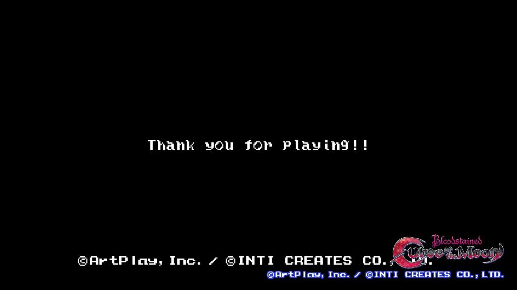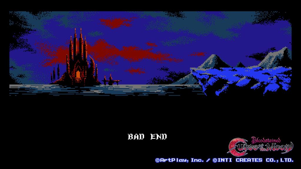 Bloodstained: Curse of the Moon, developed by ArtPlay and Inti Creates, is the 2D, classic-style sibling game to Bloodstained: Ritual of the Night. I’ve written about this game many times over the years. Similar to how I’ve been trying to play an old-school Mega Man (MM) game from the MM: Legacy Collection each year, I often make time for a replay of Curse of the Moon to see one of its many endings and unlock the corresponding trophy that goes along with it. Well, I can finally put this game to rest just like how the Belmont’s used to put Dracula to an early grave every other year or so. This time around, I finished the game while sacrificing each character along the way. If you’re not familiar with Curse of the Moon, after you finish each of the first 3 stages, one of the additional playable characters introduces themselves to you and you’re given the option to ask them to tag along or kill them and take their ability. It’s a simple risk/reward system where the more allies you have, the longer you’re survive, as you can swap to a new character mid-game. Each character comes with their own health bars, unique abilities and sub-weapon options. It’s been said many times, but the developers at ArtPlay were clearly inspired by Castlevania III. This “evil” playthrough of sorts is a bit difficult since you essentially have one health bar. With that said, your fallen comrades grant you their abilities when you murder them, so you’ll gain a double jump and other traversal abilities, which ultimately makes for an even quicker playthrough. Each level is comprised of multiple paths that make use of each character’s traversal ability, so it’s interesting to see what Zangetsu is capable of and how quickly you can navigate a stage when he has all the other character abilities at his disposal.