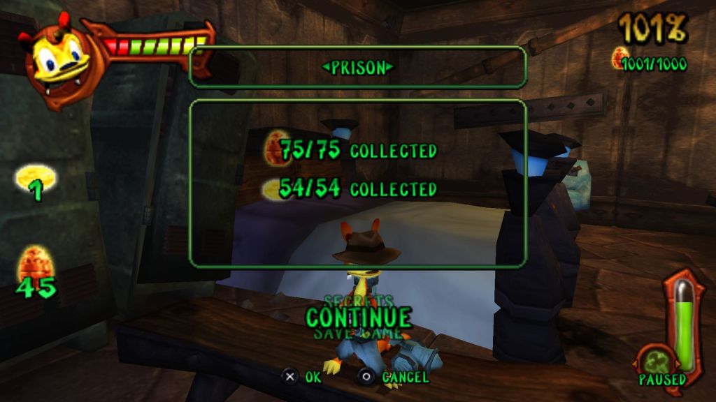 Then there’s the mini-games, which are all direct references to everyone’s favorite movies from the early 2000s and before; The Matrix, The Lord of the Rings and even Indiana Jones are all here. Daxter dresses the part for each mini-game, but they’re all QTE variants with surprisingly difficult points thresholds to earn the best ranks. If you finish each mini-game once, you unlock new upgrades and such, including permanent increases to your maximum health. The movie mini-games all take place during his dreams when you rest in the bed at your bug headquarters. Daxter will even make quips and jokes about the movies once he wakes up. It’s all very reminiscent of the Gex character played by Dana Gould and I’m not entirely sure how I feel about it. Seeing Daxter act like he’s Neo from The Matrix is like the last thing I wanted to the series being associated with. Talk about destroying any sort of identity this franchise had. I played the entirety of Daxter at low volume, hanging out with my brother while I was visiting home for my dad’s funeral. There was something comforting and nostalgic about playing it while my brother was grinding Diablo 2 on his PC for the umpteenth time. It felt like the old days when my dad used to be in the basement with us while we gamed and he worked on his model plane kits. I completed the game at 101% with the Platinum trophy earned, but I’ll probably never take Daxter out for another spin.