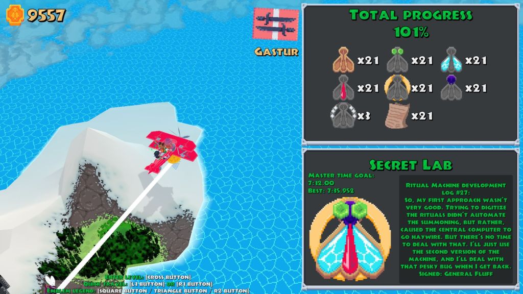 Despite Encore being more or less the same as the original release, the camera/controls have been vastly improved. Instead of having the ability to rotate the entire camera in a stage, the camera is now fixed and will automatically change perspective during particular parts of a level. Some of the platforming felt more frustrating and fun due to the camera controls in the first game, so it’s a welcome change here. The goal of each stage is to simply make it to the end of the level. Along the way, you’ll face enemies, platform challenges and other environmental hazards. If you fall of a ledge, you restart at the nearest checkpoint. For each level, there are optional goals to complete, which require you to beat the stage under a particular par time and collect all of the green crystals and coins, for example. You don’t have to earn them all at once, either. I typically found myself playing the stage thoroughly, collecting all of the goodies first and then making a no death, speed-run of the stage to net the other objectives. Each stage has a Medal which get decorated based on the objectives that you complete. This is where I found the game to be more fun and engaging as it’s a relatively easy platformer otherwise.