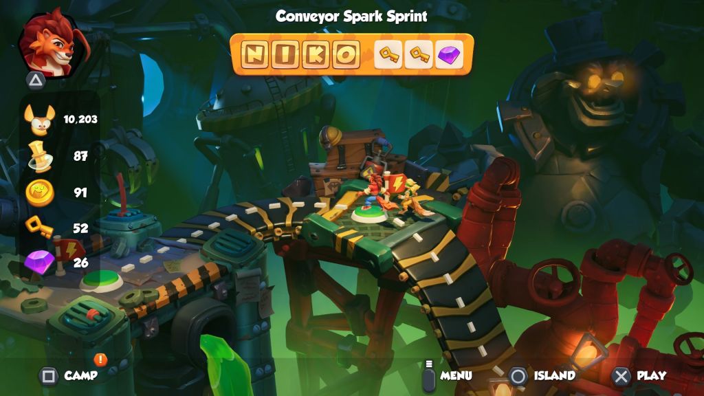 Each stage is littered with goodies to collect and bonus areas to discover, often hidden in various nooks & crannies. One thing I did appreciate about the game is that there are a lot of background/foreground objects that can be broken by performing a ground-pound. Your reward for breaking these objects is typically Fireflies, the game’s main currency, but there are also Keys, gems and letters that spell “NIKO” to collect. What’s completely wild and unacceptable is that the Keys, Gems and NIKO letters aren’t used for anything and are simply there for completion purposes only. Unlike Crash Bandicoot, you don’t use gems to access secret levels. The fireflies, artifacts and special coins found in the stages can be spent at an in-game shop to unlock artwork, 3D character models and more extras. A “regular” chest gives you a chance at earning a particular set of unlocks while the “epic” chests promise better rewards. They’re sort of presented like loot boxes, but it’s more or less their way of presenting a “Gacha” mechanic, similar to the “Gatcha Lab” from Astro Bot, for example. The special coins are used to purchase mounts (rideable animals a la DKC) and can be summoned mid-stage (although they are kind of useless).