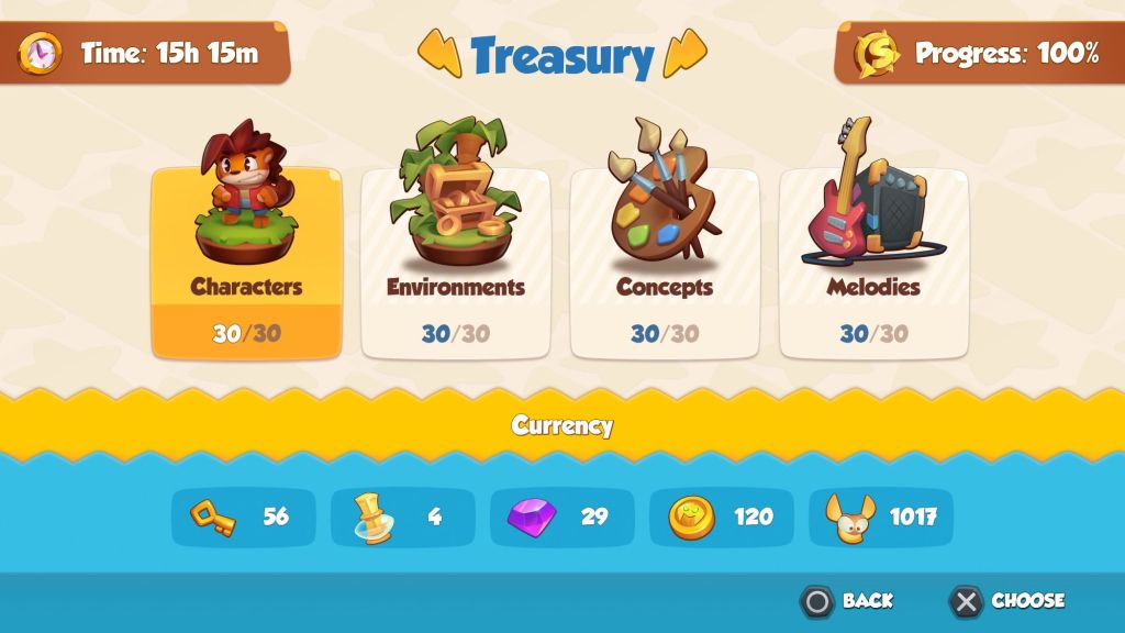 Nikoderiko sometimes hones in on a particular concept and doesn’t repeat the idea, but it all feels like the “Greatest Hits of DKC”. There’s one level that’s basically Stop & Go Station from the original DKC and there’s another level where the lights flicker on and off, which is reminiscent of Blackout Basement. There’s even a dedicated minecart stage. It’s so egregious and in almost every instance, the lack of polish, creativity and craftsmanship is evident. Obtaining 100% in-game completion is exhausting as well. For one, you have to collect 15,000 fireflies and not spend them. You then need to purchase nearly all of the unlockables from the Treasury. My GameFAQs Pro-Tip? Replay the first level’s bonus room until you have enough of the currencies to unlock everything. When you finish the bonus room, the game will spit you back out right in front of it. Rinse and repeat for a few hours and you’ll have yourself a Merry Little Christmas. It took me around 15 hours to achieve the in-game 100% completion, but there’s a no-death trophy I’ll likely never bother attempting.