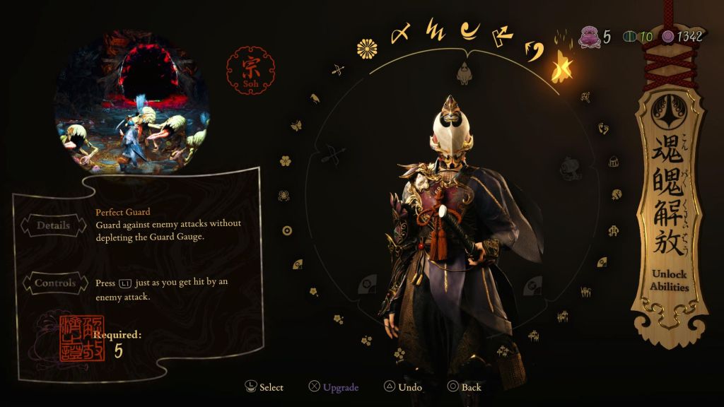 ACT isn’t the most polished game, even after its many patches/updates, but it’s certainly greater than the sum of its parts. As someone who’s still a completionist-at-heart, there are particular collectables that are currently unobtainable, though. In each area, there are a finite amount of purple Umami Crystals to collect. These crystals are used to learn new skills from three separate skill trees, in addition to “Adaptations”, which are powerful special moves that you can learn from a variety of sources. One of the larger, more open areas is apparently missing five Umami Crystals, so you technically can’t “complete” the area. In one of the final zones, you can obtain more Umami Crystals than what the total fraction displays on the fast-travel screen. In terms of what I used my Umami Crystals on, at first, I focused on the “Way of the True Crab” skill tree as it housed perfect guard skills and was focused on counter-attacks. The Parry technique is really interesting as you have to hold the block button, but then release it just before the enemy lands their attack. The parry animation and sound is super crunchy and feels incredibly satisfying to pull-off. Enemies also have a stamina gauge of sorts which once depleted, you can topple (stagger) the enemy and deal massive damage. The other skill trees focus on other areas of combat, one of which incorporates the Fishing Line. There are enough Umami Crystals in the game to learn everything, so you ultimately don’t have to pick and choose.