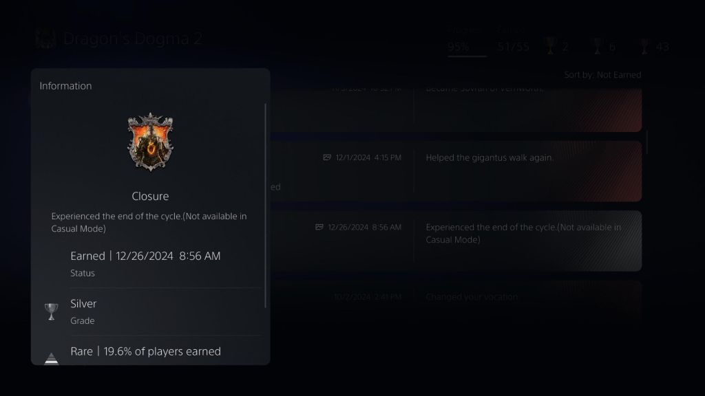 At the end of the day, I spent 115 hours with the game. I found more than 170 Seeker Tokens, have all Vocations for my main character above level 5, have made decent progress with my main Pawn’s Badges, and unlocked all but three trophies (two of which will require a second playthrough). To earn all of the Pawn Badges, you have to play through the game at least 5 times to earn the badge dedicated to the Sphinx (as she appears once per playthrough). In the end-game area, there’s a merchant who will sell you all of the best weapons and armor for each Vocation. Furthermore, dragons (who drop materials needed to upgrade all of the best equipment) will continuously spawn after enough time has passed in this “Unmoored World”, so you can grind to your heart’s content while completing all of the post-game objectives in order to see the true ending. With that said, there’s apparently a time limit in the post-game world, but I initiated the final credits sequence before reaching that point. As I discussed earlier, while a part of me could keep playing the game for another 100 hours, grinding levels and purchasing all the gear, there’s really no reason to when there’s no ultimate dungeon or hard secret boss to challenge. I really hope Capcom has more plans for a proper expansion (and a Hard mode), because I want more excuses to spend time in this world.