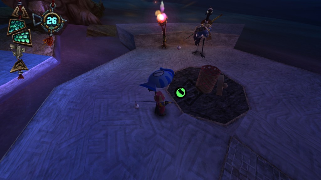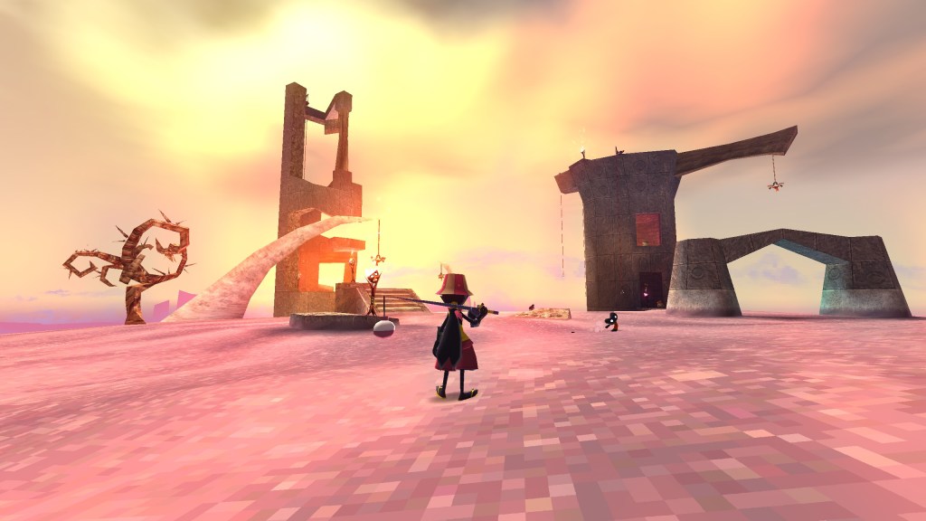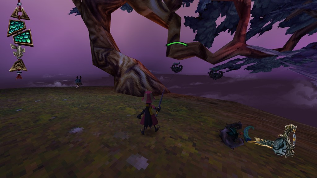 One of the main hooks (sorry, I can’t stop) of The Big Catch is, well, catching fish! The fish are more or less the Power Stars, Jiggies or Power Cells from Super Mario 64, Banjo-Kazooie and Jak and Daxter: The Precursor Legacy, respectively. Just like the monkeys from Ape Escape, what’s super fun and interesting about the fish is that they’re living collectables. The fish will naturally swim away from you as you approach them and some of them even have tiny legs, so they have no issue jumping out of the water to scurry away. If a fish is water-bound, you actually need to find a lure before you can even begin to reel them in. Lures are expendable items that can be found growing on special trees. Finding the trees with lures isn’t always an easy task, either. When you’re holding a lure, some of your movement is disabled, so it sort of becomes a puzzle in a sense to take it back to the pond/river where the fish is. For the land-based buggers, the fish will ultimately grow tired if you chase them for long enough. The ones that have found themselves on the surface will usually take Caster through the surrounding area, which sort of becomes a platforming challenge in and of itself. While some fish are relatively easy to catch, many of them can be found at the very end of challenging platforming sequences, many of which require mastery of the controls. There’s also a lot of verticality in the stages, but thankfully there are shortcuts/wrap-arounds you can can activate (à la Demon’s/Dark Souls if you were born yesterday) to make retracing your steps more manageable. If the full game plays with these ideas in even more creative ways, I think the fish from The Big Catch will easily become one of my favorite collectables in any 3D platformer.