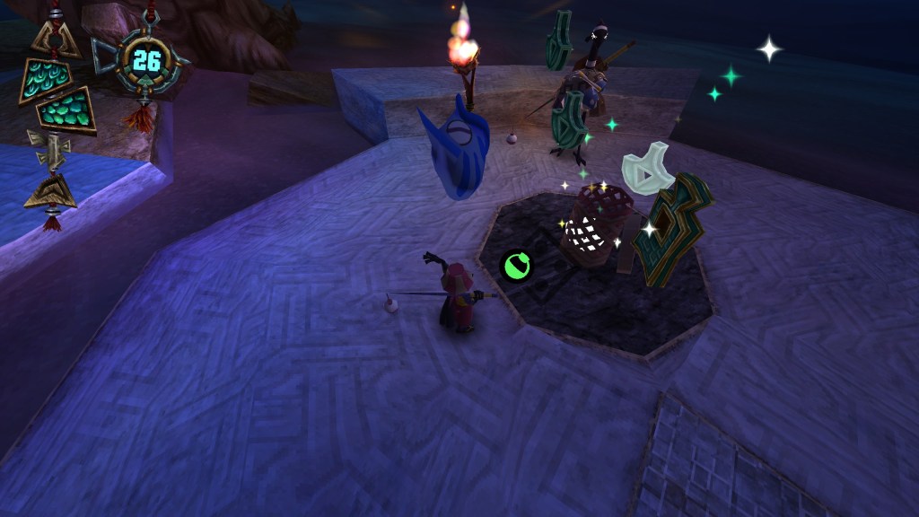 As Caster exits the tutorial pond, you’re teased by tadpole-looking creatures that pop-up out of the sand. After whistling for their attention and with the cast of your rod, these little friends become your “Epona of the Desert”, if you will. Before you realize it, you’re sand-surfacing and zipping across the wasteland in front of you. You can even “crack the whip”, so to speak, to continuously build-up speed while surfacing across the landscape. There’s a cool down for this mechanic, but just as the meter fills back up, you can time the button press to do a “perfect golden crack”, which gives you a fairly significant boost. The music that plays when you’re travelling across the desert landscape perfectly encapsulates that aforementioned feeling of adventure.