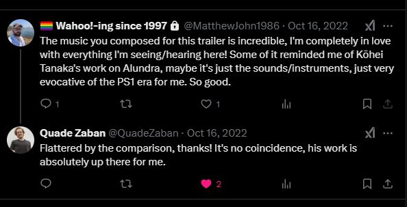 Speaking of the game’s soundtrack, I sent the composer, Quade Zaban, a tweet on Twitter (I’m not calling it “X” and this will be the last time I reference that site) complimenting him on how the piece from the trailer was evocative of the PS1 era and how it also reminded me a bit of Kohei Tanaka’s work on Alundra (one of my favorite PS1 games of all time). To my surprise, the composer confirmed my suspicion that Tanaka’s work was in fact an influence! I didn’t become aware of this game until after the Kickstarter was already funded. I’ve been skeptical of most Kickstarter projects, however, after having backed a few that were either disappointing (Mighty No. 9) or have yet to release (like Unsung Story, which I backed in 2014…), but The Big Catch looks (and sounds) promising.