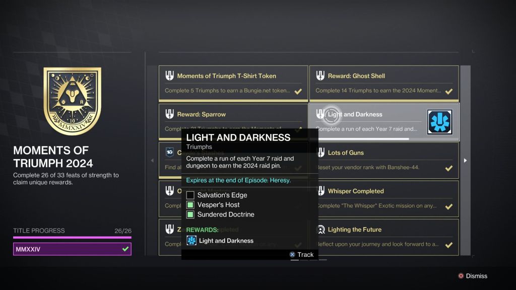 I’d hate to say it, but it’s probably going to be Destiny 2 again this year (at least according to my “Year-In-Review” from the big platform holders). I can’t really say it’s my “favorite ongoing game”, however, as I don’t necessarily enjoy playing it anymore? This past April through June, leading up Destiny 2’s Year of Prophecy, I more or less caught up with the previous year of content. In the span of a few months, I crammed-in the campaign missions on Legendary difficulty with random players, finished all three Episodes (Echoes, Revenant, and Heresy) along with their respective Seals, and earned my Moments of Triumph 2024 (despite forgetting to order my damn exclusive shirt from Bungie’s store for the very first time). The mini-raid style fight where guardians are summoned to take down The Witness (The Final Shape’s main antagonist) was really cool to experience, even if it was way after the fact (people were still fighting him)! The ending sequence to The Final Shape also felt like some sort of real closure, despite Bungie’s efforts to begrudgingly keep the game “alive”.