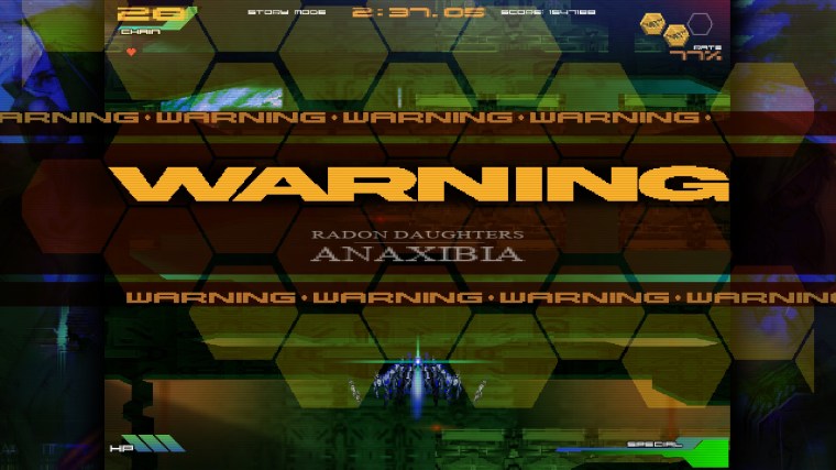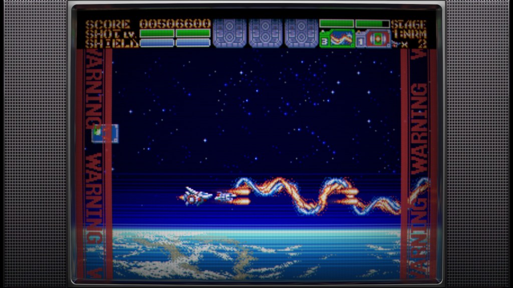 Although I haven’t finished BIRDCAGE yet, this PlayStation 1 (PS1)-inspired arcade shooter contains my favorite “WARNING” screen of 2025. For one, the use of brown and yellow is a nice change from the typical red “WARNING” labels. I love the consistent collage of hexagons in the background, too. The boss names are also deliciously ridiculous; “RADON DAUGHTERS ANAXIBIA”, for example, is someone you’ll face. I think the only thing I would have changed was the additional “WARNING” label rows above and below the main strip. I was hoping for something along the lines of “BE ATTITUDE FOR GAINS” from Radiant Silvergun, you know, the type of ridiculous nonsense Treasure would employ for their shoot ’em ups. For those with a keen eye, in Earthion, a horizontal shooter, the “WARNING” label is a vertical strip. In BIRDCAGE, a vertical shooter, the “WARNING” label is horizontal.