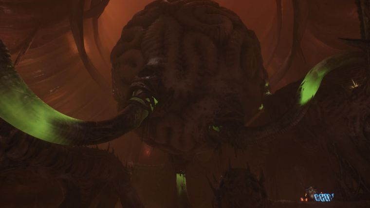 Art of Vengeance has a level or two where you need to destroy barriers in order to progress. You’re usually tasked with destroying an inanimate object or some enemy to make the “thing” go away. There’s one stage where multi-color bands of organic mass impede your progress. It’s the laziest and most uninspired usage of EVP, dating back to the type of design elements you’d find during the NES era (not that there’s anything with that). In DOOM: The Dark Ages, towards the end of the game, you’ll find yourself in the “belly of the beast”, so to speak. There’s a lot of good EVP in The Dark Ages, but in this level, you need to punch these green puss bags, which destroys tentacles attached to a heart/brain in order to progress. It’s arguably not very different from what you were doing inside the giant “Kaiju” from Art of Vengeance, but the setup is way cooler and it’s far more visually pleasing.