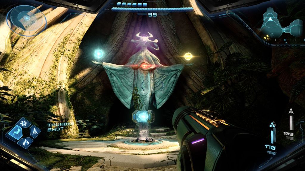 A few other games that incorporated some degree of EVP, but didn’t quite make the cut, would be Metroid Prime 4: Beyond (MP4), Shinobi: Art of Vengeance, and DOOM: The Dark Ages. I already wrote about MP4 and why I found it to be relatively disappointing, but an effort was made at the very least. The much-hated “Green Crystal” hunt has you bringing back the crystals you find out in the desert and dumping them into an alien receptacle of sorts. Even though it’s one of the worst aspects of the game, I sort of enjoyed seeing the meter, for lack of a better term, fill-up with its puke, neon green color. Additionally, as you unlock new elemental shots, there’s a puzzle-like shrine near your base that requires the usage of your newly acquired abilities. When you solve each elemental puzzle, an orb of said element will appear on the statue and once all three have been lit, you’re rewarded with a new Energy Tank. Very cool.