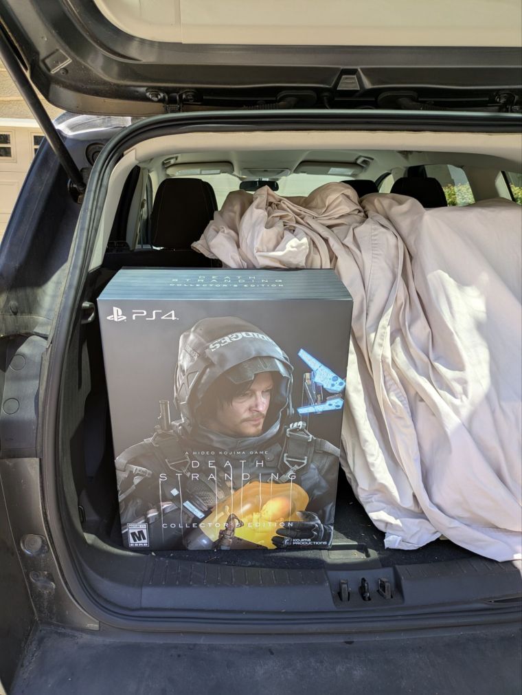 Prior to heading to the airport, as any responsible car owner would do, I got a car wash. I had asked the car-shipping service company if packing my car was allowed. They said yes, but up to a certain amount of weight, which might result in additional costs. For whatever reason, I had left behind a handful of collector’s editions for certain games back at my mother’s house, one of which was for DEATH STRANDING. For those unfamiliar with the game, DEATH STRANDING is more or less about one man’s journey from the east coast to the west coast. It’s also a game about carrying precious cargo and making deliveries. Ironic, right? As I’m standing in-line at the airport, about to board the plane, my phone rings and it’s a number I don’t recognize. A reluctantly answer the phone and a man tells me that he can have my car picked-up at 11:00pm tonight. I didn’t know what to say, so I muttered, “Okay, sure…”.
