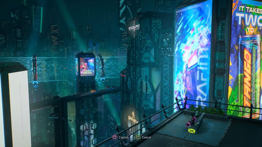Promise Mascot Agency (PMA) is loaded with EVPs. At the start of the game, the evil mayor’s signs (one of the game’s many “collectables”) are plastered all over town. One of your objectives is to quite literally drive over them. When you do this, they’re replaced with signs of your beloved Pinky (who also ends up running for mayor in the latter half of the game). In addition to this, you’ll meet a mechanic who tasks you with hunting down and capturing spirit foxes around the island. When you find one, your truck gets upgraded with additional exhaust pipes and the sort, including wings which let your truck fly like an airplane! There are also hidden stickers littered around the map and once collected, they get stamped on the exterior of your vehicle. Finally, as you re-open businesses, lanterns, billboards, flags and more breathe life back into the island. As the town develops, you’ll also start to see citizens return to the island, which are represented by featureless silhouettes of people standing along sidewalks and around buildings. It’s certainly a clever (yet stylish) cost-saving measure to make the world feel more alive. The town/island itself from PMA is my favorite EVP of the year.