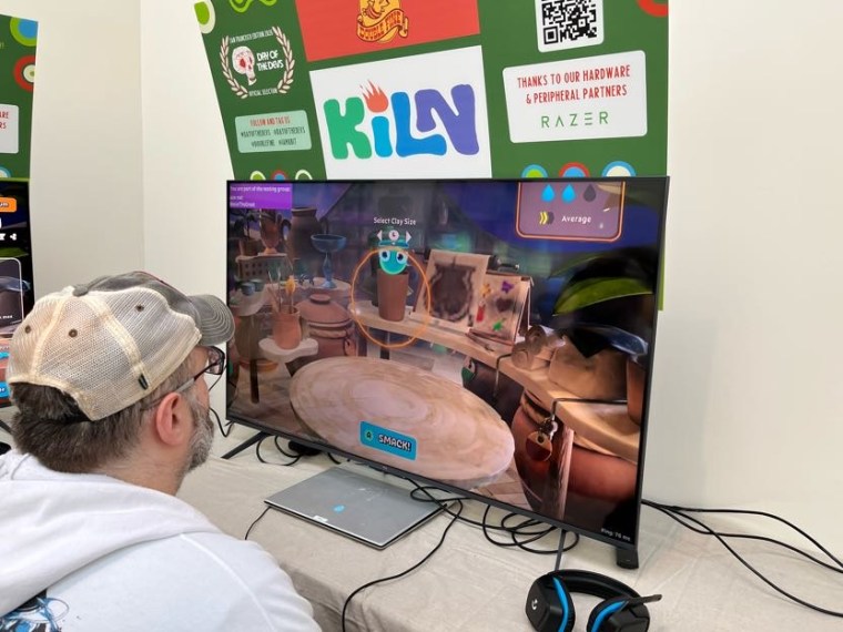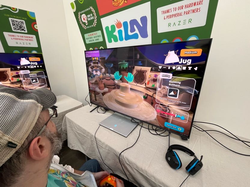 Finally, there was Kiln, developed by Double Fine, which had its own dedicated line and room. I wanted to try it before we left for the day, so we got in line just as another group was starting. After a 10 to 15 minute wait, it was our time to sculpt some clay. If you’re not familiar with the game, Kiln is Double Fine’s latest release, hot off the heels of last year’s Keeper (a cinematic adventure game where you play as a sentient lighthouse — which made my Top 10 last year). Kiln is a competitive multiplayer game where you make your own pottery and then take them to battle. The demo more or less featured the pottery-making aspect of the game along with a Local Area Network (LAN) match between two teams in the room. First, you choose the size of your pottery; small, medium or large. The size of your pot has advantages/disadvantages out on the battlefield. The smaller your vase, the more quickly you can move around and there are spots on the maps where you can squeeze through smaller cracks in the environment. If you opt for a larger piece of pottery, you’ll naturally move slower, but you can hold more water and take more damage. The goal of the match is to defend your kiln’s fire from being doused while attempting to destroy the other team’s base.